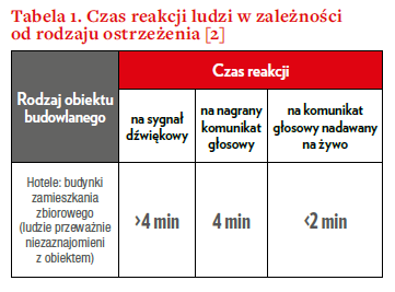 Dźwiękowe systemy ostrzegawcze umożliwiają przekazywanie komunikatów zarówno na żywo, przez ratowników przeprowadzających akcję ratunkową (lub inną wyznaczoną osobę), jak i gotowych komunikatów, nagrywanych w pamięci centrali DSO. Które z komunikatów alarmowych przedstawionych w tabeli są bardziej odpowiednie? Z badań wynika jednoznacznie, że ludzie reagują najszybciej, gdy słyszą komunikaty alarmowe nadawane na żywo. Czas reakcji na sygnały nadawane dźwiękowo lub na komunikaty automatyczne jest zbliżony.