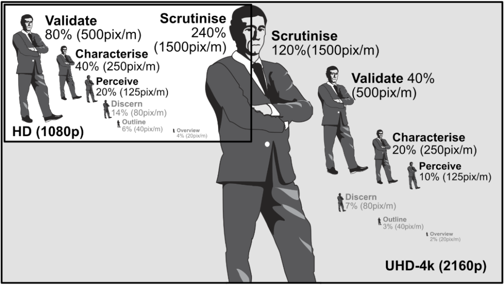 - Nowy poziom „Scrutinise”: Wprowadzono próg 1500 pikseli/m, odpowiadający jakości zdjęć paszportowych, umożliwiający bardzo szczegółową analizę cech osoby (np. kolor oczu, znamiona, zarost).