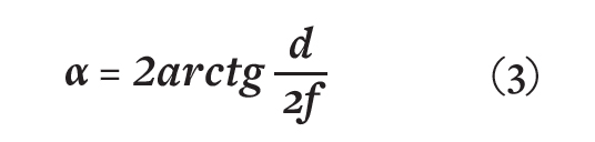 Jak pokazano na rys. 1, pole widzenia zależy nie tylko od ogniskowej obiektywu, ale także od wielkości matrycy przetwornika obrazowego. Kąt widzenia dla każdego boku pola widzenia można obliczyć z prostego wzoru, korzystając z funkcji arcus tangens [3]: