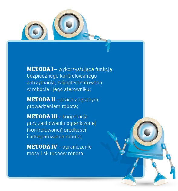 Do pierwszych trzech doskonale nadają się również klasyczne roboty przemysłowe, ale odpowiednio skonstruowane lub dodatkowo wyposażone w zewnętrzną aparaturę. Metoda czwarta to tryb współpracy zakładający wykorzystanie cobotów.