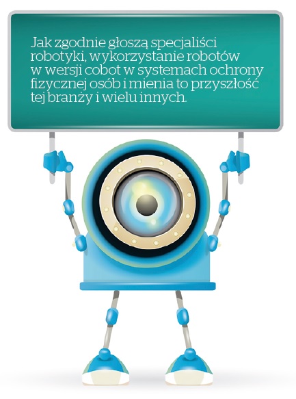 W systemach ochrony osób i mienia urządzenia robotopodobne już są obecne, a coboty znajdą wkrótce (już eksperymentalnie znajdują) zastosowanie. Nie zawsze zdajemy sobie sprawę z tego, że np. system kontroli dostępu do strefy, pomieszczenia lub urządzenia podlegającego ochronie przed dostępem osób niepowołanych (nieuprawnionych) ma cechy prostego pod względem sprzętu i oprogramowania robota, który ma sprawdzić i ocenić, czy osoba podejmująca próbę wejścia lub dostępu do nich należy do zbioru osób uprawnionych (powołanych) do tego, czy też nie należy. Od jakości tego quasi-robota zależy, jak nikłe jest prawdopodobieństwo popełnienia przez niego niebezpiecznego błędu drugiego rodzaju, czyli uznania osoby nieuprawnionej (nieupoważnionej) za uprawnioną (upoważnioną), co skutkuje odblokowaniem wejścia (dostępu) i niewysłaniem sygnału alarmu do centrum dozorowania. Podobną analizę, która może wydać się niektórym robotykom nieco ryzykowna intelektualnie, można przeprowadzić w stosunku do innych elementów systemu ochrony osób i mienia, np. systemu telewizji dozorowej, zwłaszcza wyposażonego w kamery uruchamiane przez ruch obiektu w strefie dozorowania danej kamery.