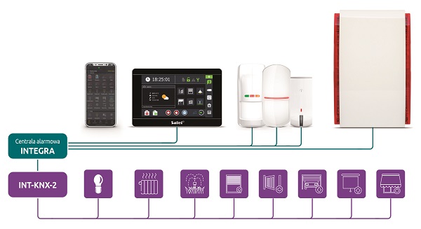 Wyjątkową cechą rozwiązań SATEL jest możliwość łatwej integracji – inteligentną instalację KNX można powiązać z systemem sygnalizacji włamania i napadu INTEGRA za pośrednictwem modułu INT-KNX-2. Dzięki temu sygnały z systemu SSWiN można wykorzystać w systemie KNX, i na odwrót. W efekcie użytkownicy będą mogli za pomocą jednego manipulatora (np. dotykowego INT-TSI) lub aplikacji mobilnej INTEGRA CONTROL sterować funkcjami systemu alarmowego i automatyki budynkowej KNX.